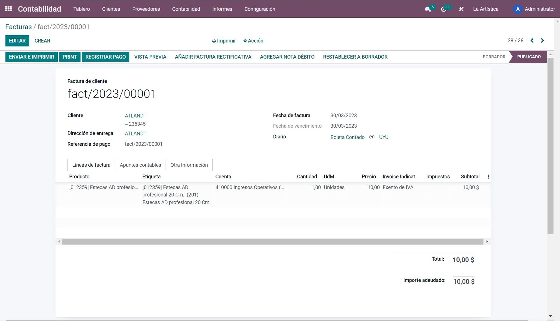 La facturación electrónica en Uruguay es obligatoria para las empresas y es regulada por el Ministerio de Economía y Finanzas. Odoo, como software de gestión empresarial, cuenta con la opción de generar y enviar facturas electrónicas , facilitando el cumplimiento de esta obligación para las empresas uruguayas.